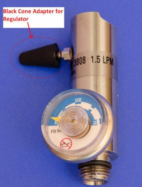 Dry Gas Tank Push Button Regulator with a flow rate of 1.5 LPM to be utilized on a dry gas cylinder. Regulator includes black rubber cone adapter to allow for a secure fit between the regulator and the mouthpiece of the unit that is to be calibrated. $149.50 ORDER |