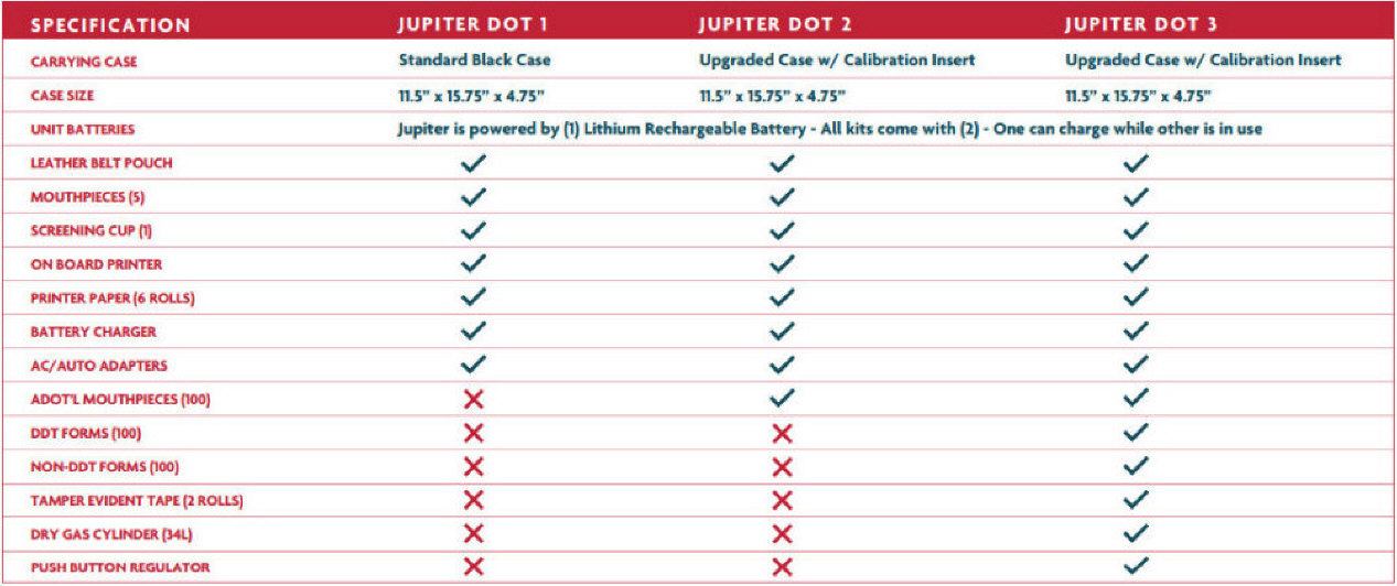 JUPITER KIT COMPARISON CHART FOR SUPPLIES THAT ARE INCLUDED IN EACH DOT KIT